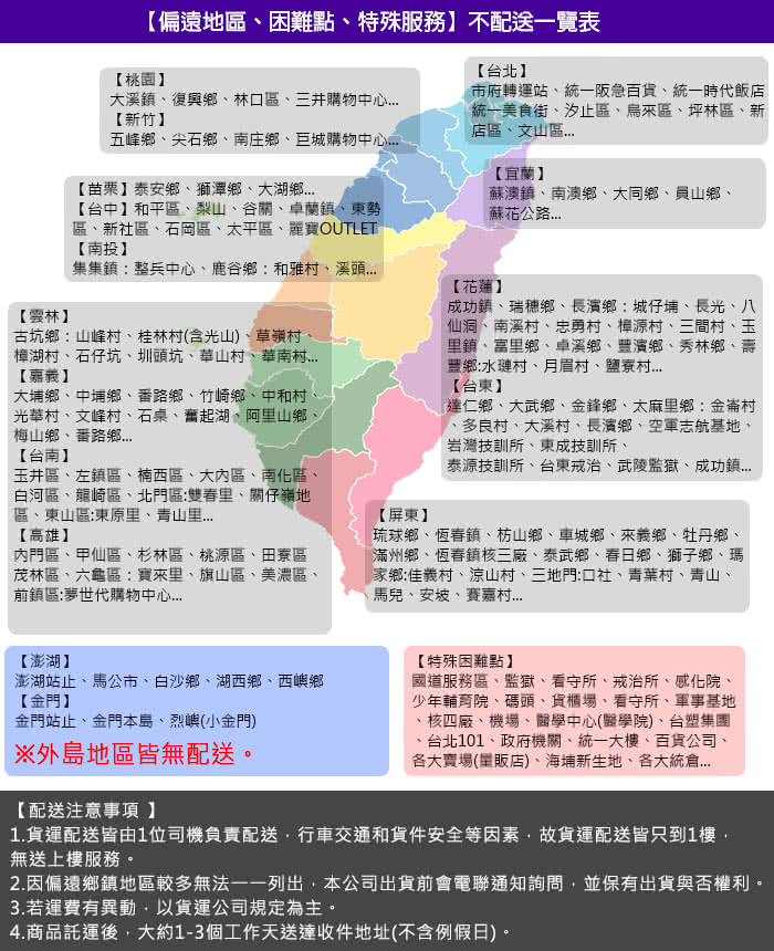 ※離島及偏遠山區地區,本公司保有出貨與否之權利!